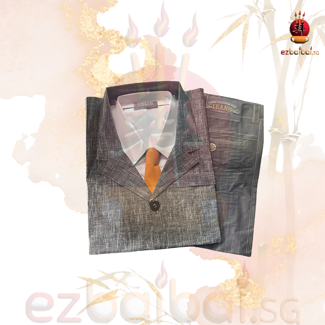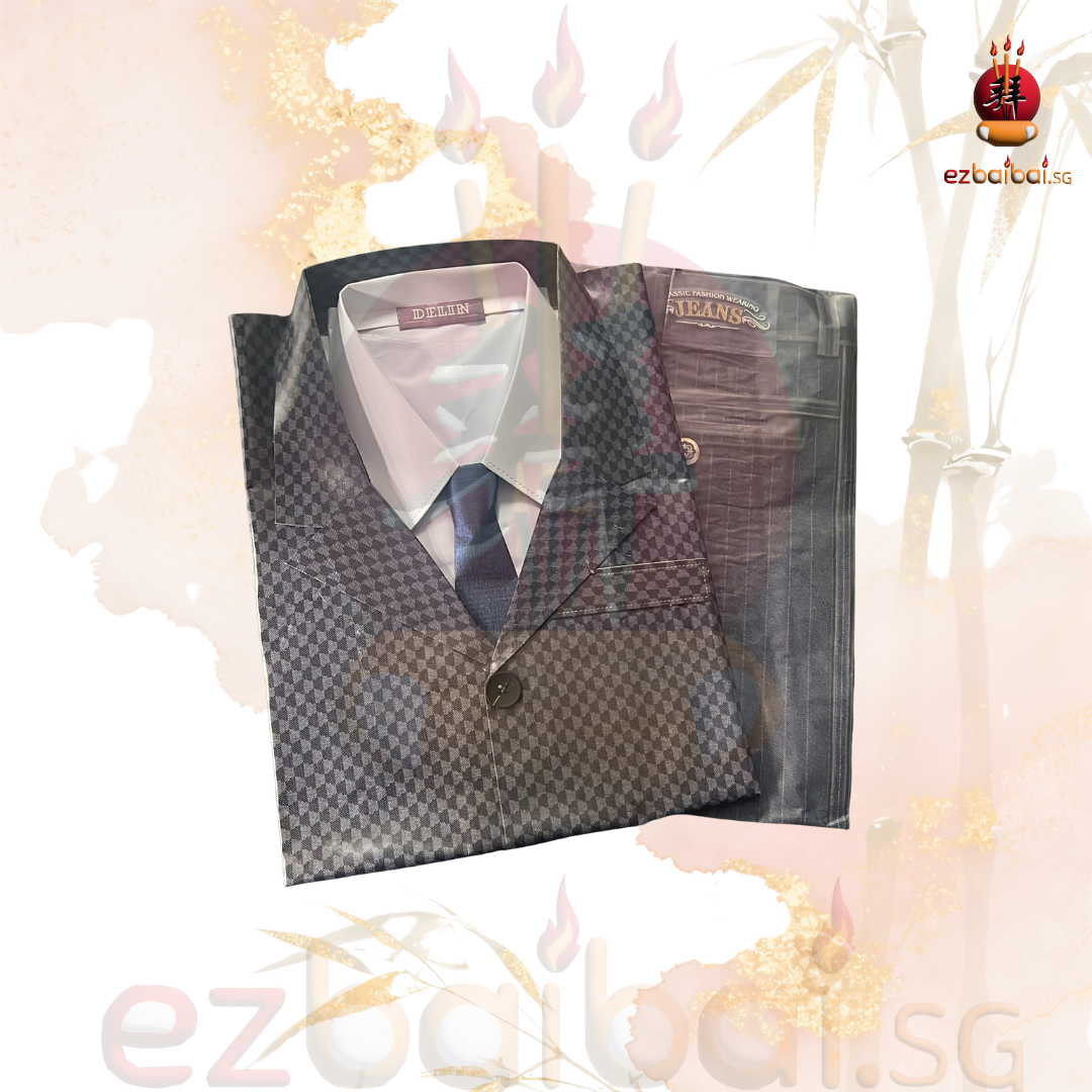 男西装装常用于传统祭拜及焚烧供品