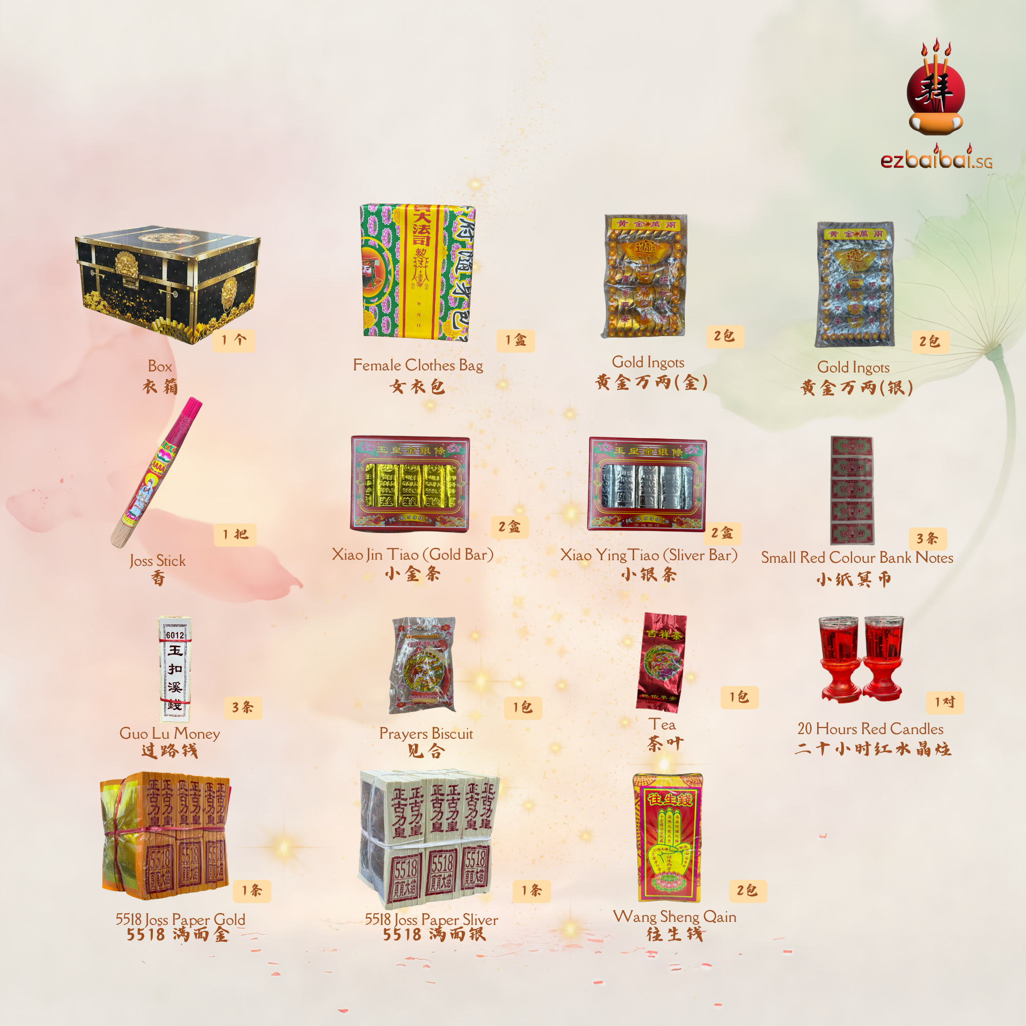 If burning of Clothing Box is not allowed in your area, please inform us and we will replace it with a Clothing Bag(衣袋 / Bag)。